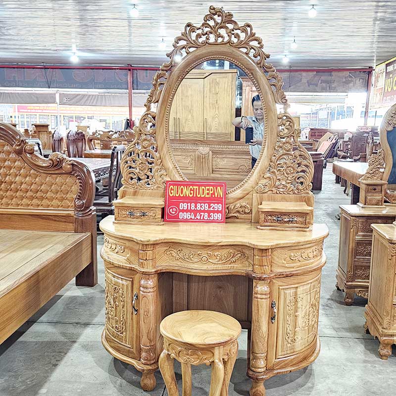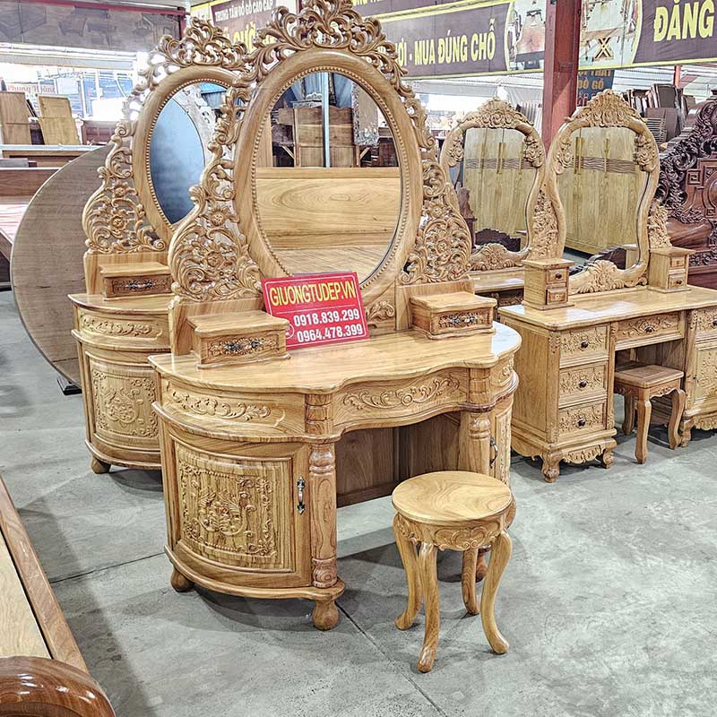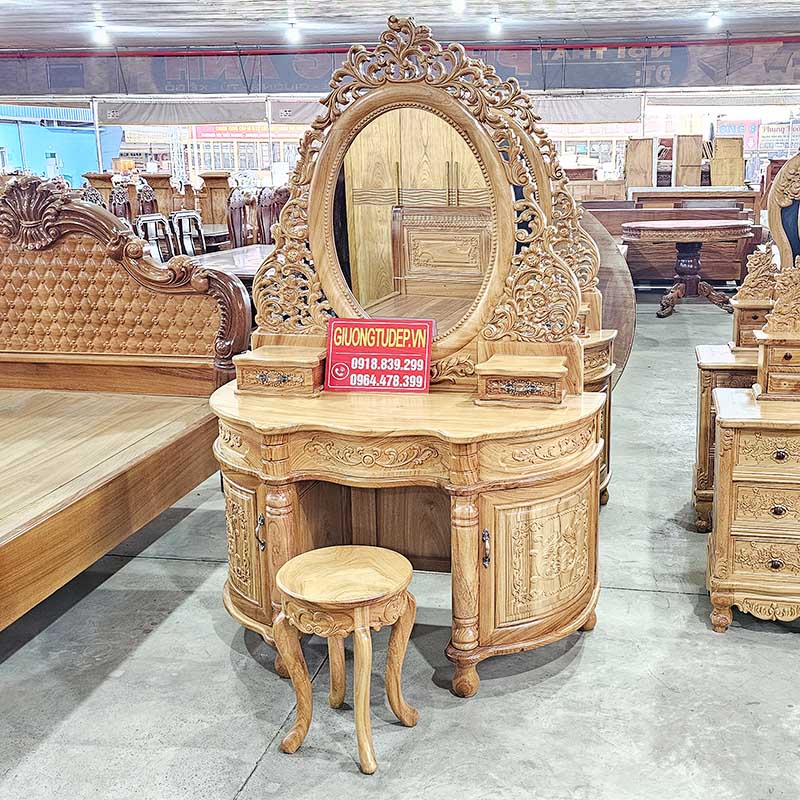 Tên sản phẩm: Bàn Trang Điểm Tân Cổ Điển Gỗ Gõ Đỏ Đục Hoa Lá Tây Siêu Đẹp