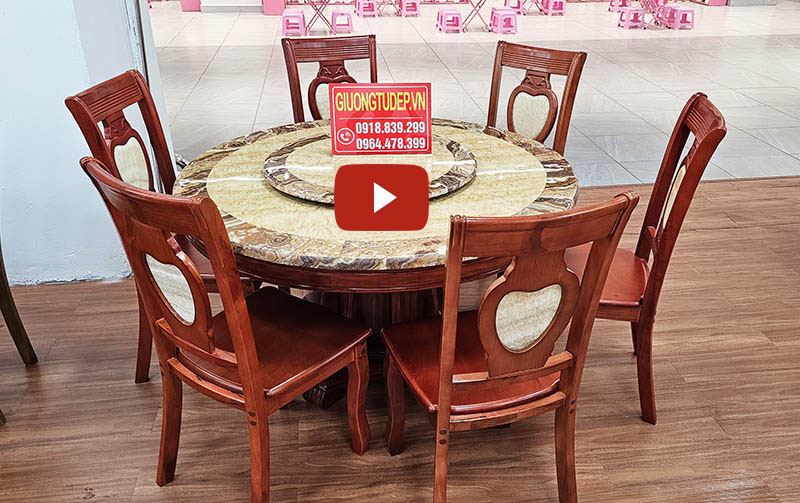 Bộ Bàn Ăn Tròn Mặt Dá Xoay 6 Ghế Đẹp