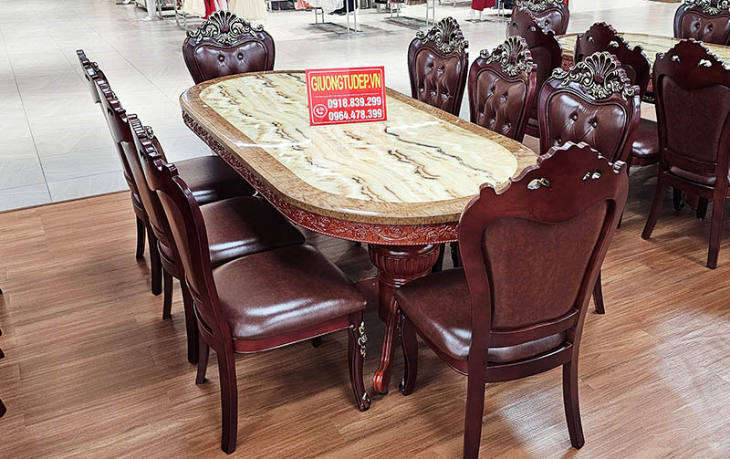 Bàn Ăn MẶt Đá 6 Ghế Oval Hiện Đại Đẹp