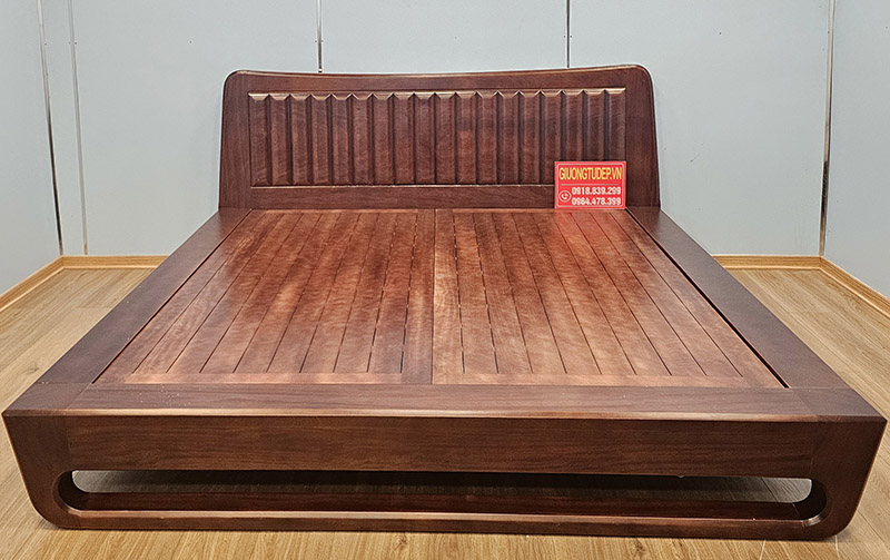 Đầu giường nổi bật với phần tựa cao, dạng nan dọc kết hợp bo viền chắc chắn. Các đường rãnh đều đặn tạo điểm nhấn sang trọng, đồng thời giúp tựa lưng thoải mái khi nghỉ ngơi hay đọc sách. Bề mặt được xử lý nhẵn mịn, màu gỗ tự nhiên ấm áp mang lại cảm giác gần gũi và sang trọng cho không gian.