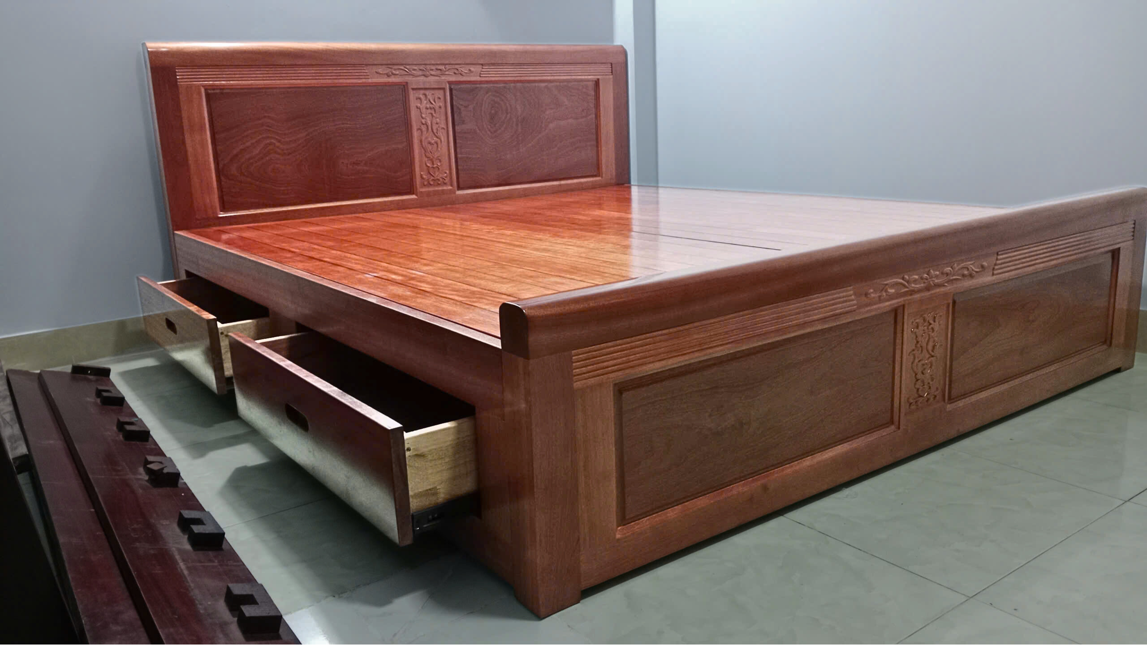 Mẫu giường gỗ xoan đào GN06 hộp kéo dạt phản