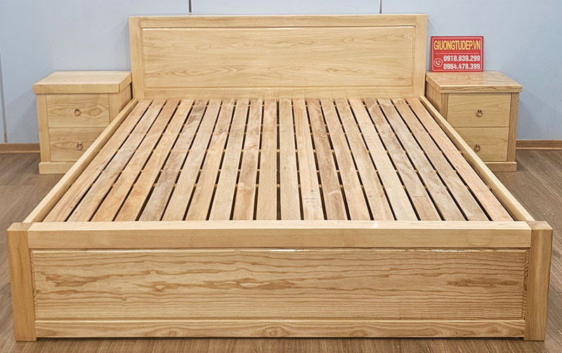 Bề mặt giường chắc khỏe: được ghép ván sồi dày dặn, tạo cảm giác an toàn và thoải mái trong từng giấc ngủ.