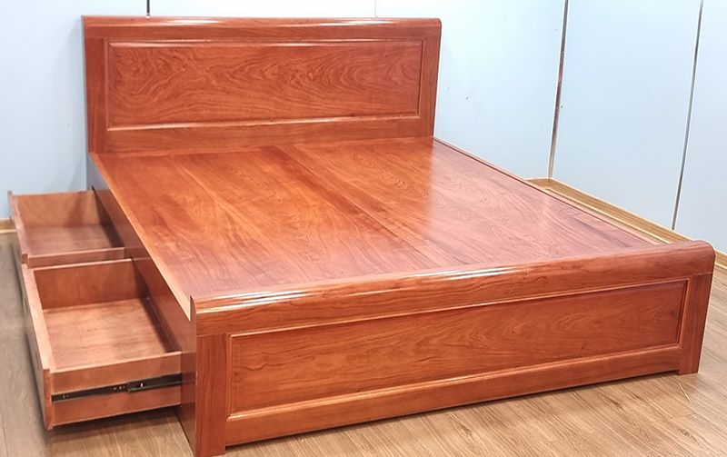 Tên sản phẩm: Giường ngủ gỗ đỏ có ngăn kéo gỗ hương đá