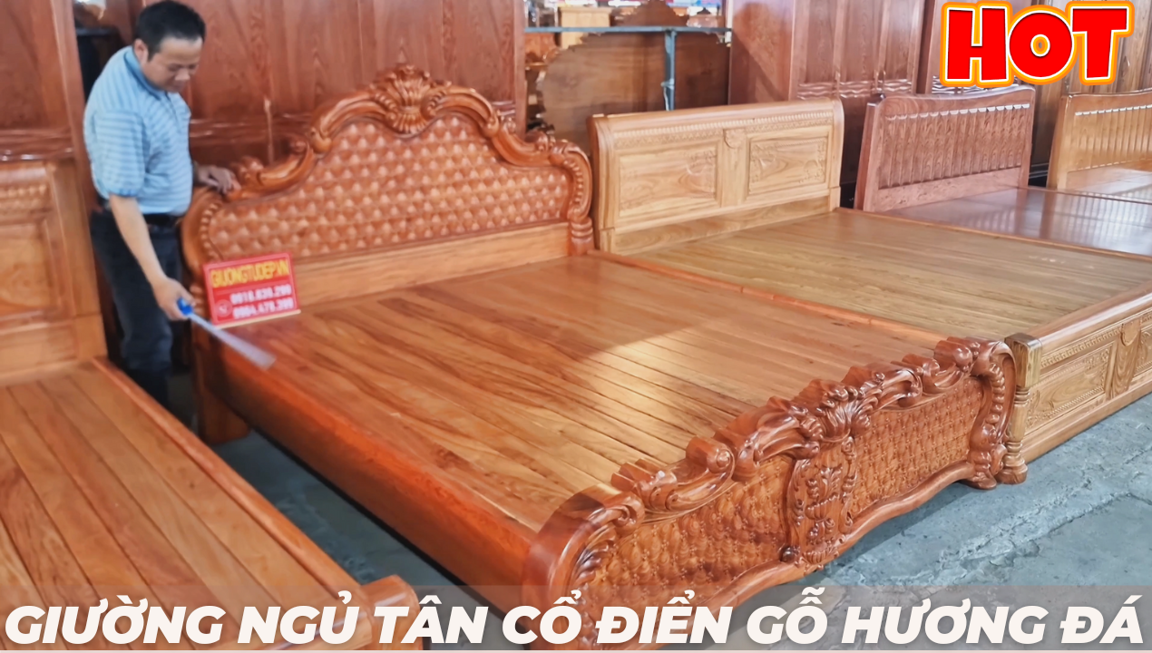 Tên sản phẩm: Giường ngủ gỗ hương đá tân cổ điển đẹp