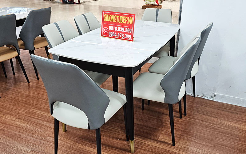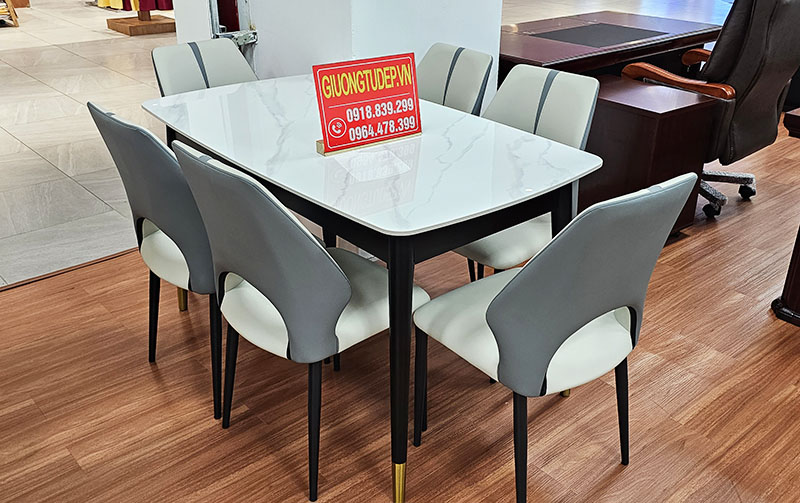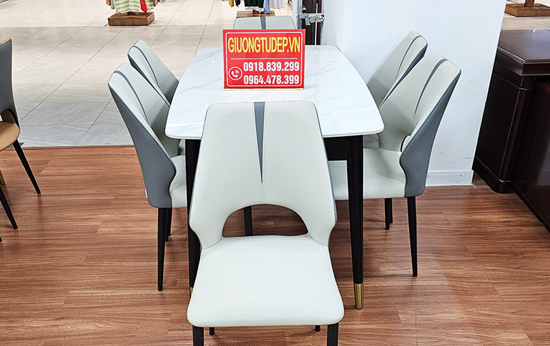 Bàn Ăn MẶt Đá 6 Ghế Oval Hiện Đại Đẹp