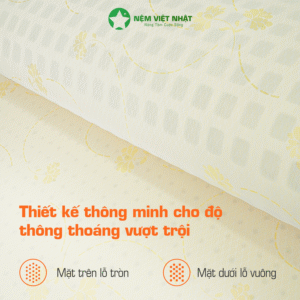 Nệm được thiết kế 1 mặt lỗ tròn và 1 mặt lỗ vuông lớn hoạt động đối lưu giúp tăng cường sự thông thoáng. Cấu trúc bọt hở đem lại sự dễ chịu cho người dùng trong mọi chuyển động vì chúng hoạt động như một chiếc xi lanh, co bóp đưa những luồng khí mới giúp phân tán nhiệt hiệu quả. Nhờ đó loại bỏ tối đa mùi hôi hay ẩm mốc từ bụi bẩn bám trụ lâu ngày, tạo cảm giác thoải mái cho người nằm.