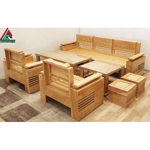 - Sofa gỗ sồi SP06 có kích thước khá lớn với 230cm, gồm 7 sản phẩm khác nhau, bao gồm: 1 ghế dài, 2 ghế lẻ, 2 đôn nhỏ đi kèm, 1 bàn lớn và 1 bàn phụ. Đáp ứng thoải mái cho cho 6 - 7 người ngồi.