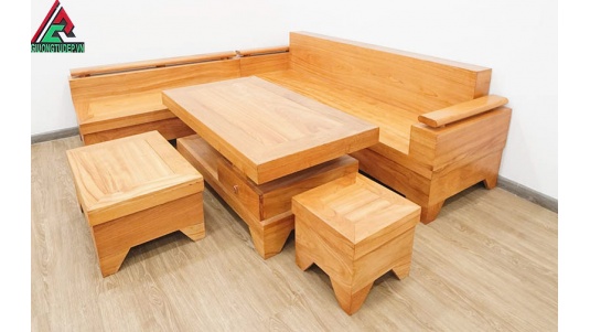 Mặt bàn là gỗ nguyên khối rất rộng rãi, có thiết kế hài hoà giữa đôn và sofa, tạo nên một tổng thể động nhất, trông vô cùng đẹp mắt. Kích thước các món đồ trong bộ sofa góc gỗ gõ đỏ SP08 rất vừa phải, tạo sự dễ chịu cho người ngồi mà không chiếm quá nhiều diện tích.