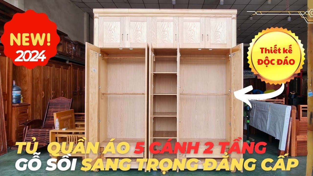 Tủ quần áo 5 cánh 2 tầng gỗ sồi