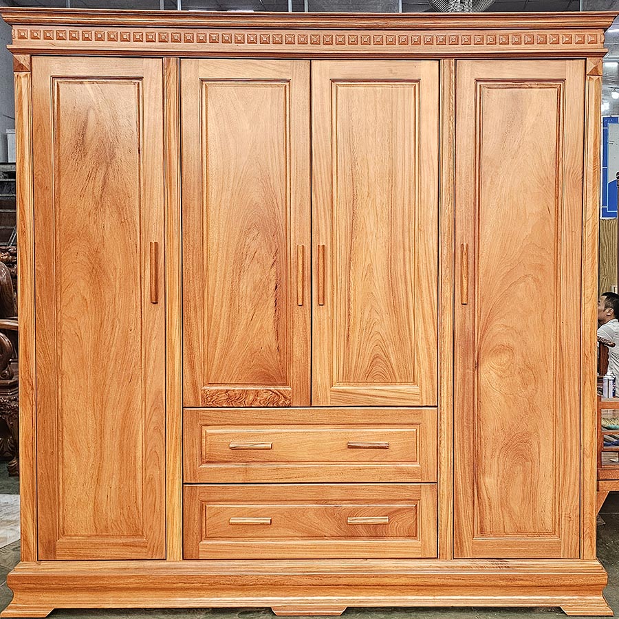 Tủ quần áo gỗ gõ đỏ 3 buồng hiện đại được làm từ gỗ gõ đỏ cao cấp đã trải qua quá trình tuyển chọn kỹ lưỡng. Đây là loại gỗ quý hiếm thuộc nhóm 1, trước đây chỉ có vua chúa, những người quyền quý mới có thể sử dụng.
